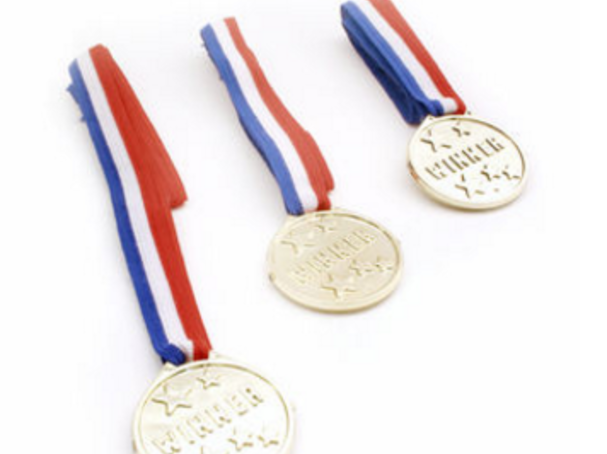 Pointing to the small pile, he said, "those are the awards from the tournaments and meets that I won." He then dismissively pointed at the larger pile, "those are the ones I got just for showing up. I am throwing them away."